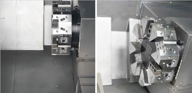 Solução horizontal: Equipada com a torre de energia do eixo B para realizar usinagem composta de giro, moagem e perfuração, com precisão de posição de ± 0,01 mm.